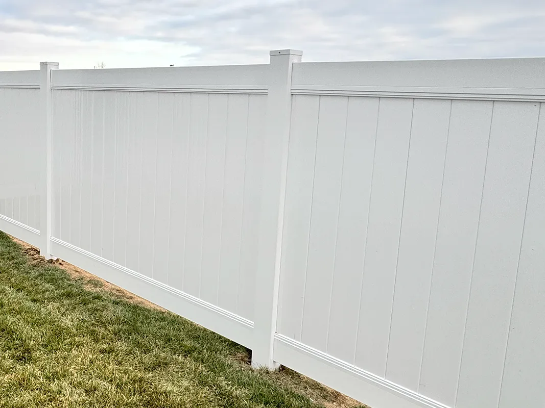 Vinyl rails connect each section of the fence and provide internal support to keep everything aligned. They help maintain straight lines across the property and give the fence a solid, dependable feel from post to post.